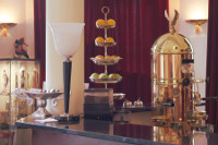 Die Gäste erwartet traumhafte Aperitifs und Weine, dazu verführerische Tapas, stilvoll serviert auf einer goldenen Etagere.