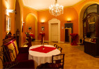 harmonieren mit der Stukkatur und den liebevoll ausgesuchten Stilmöbeln.
